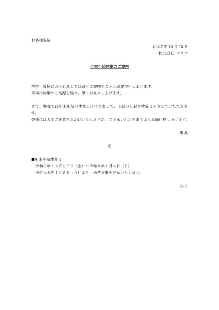冬季休業のご案内